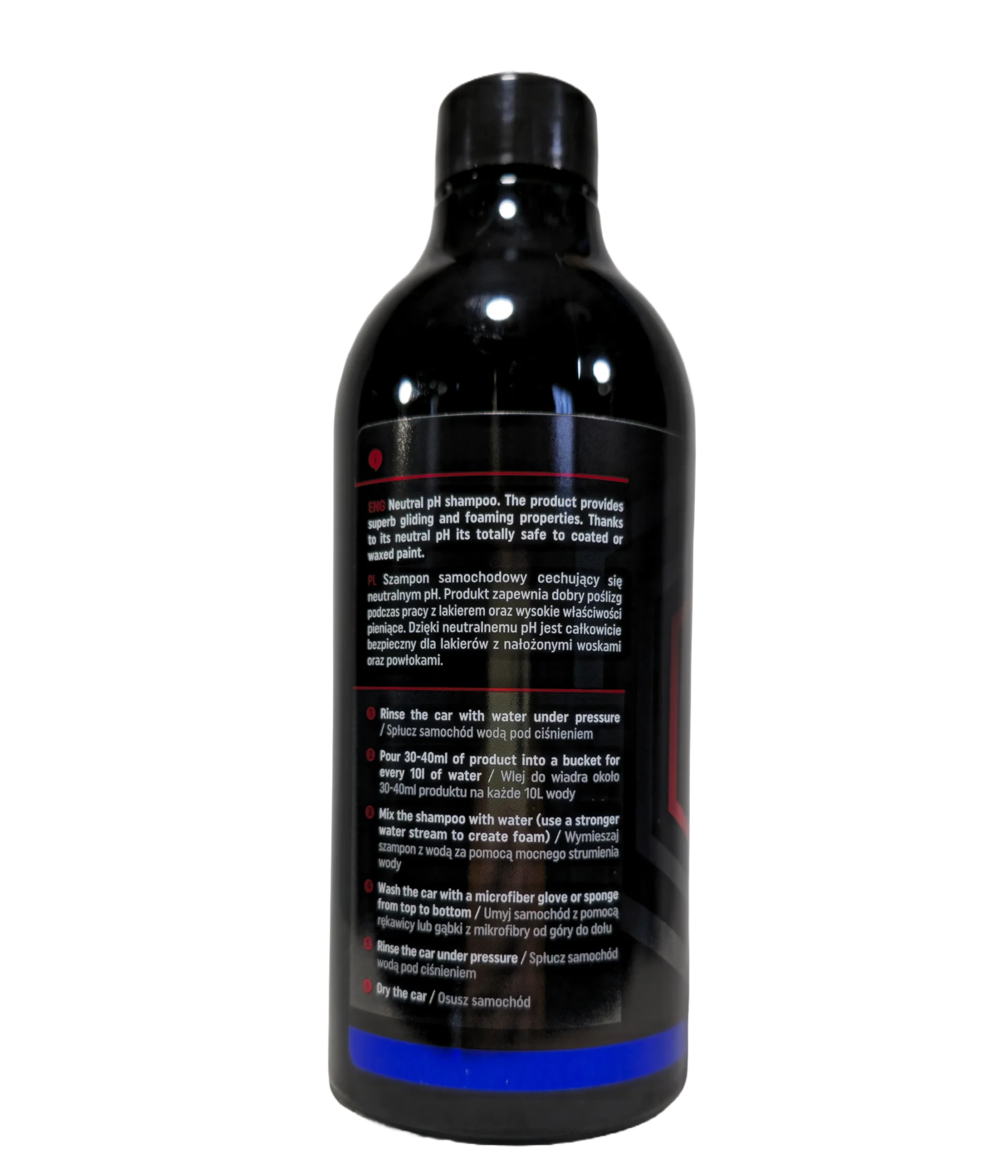 Czysty szampon o neutralnym pH – bez dodatków, bezpieczny dla powłok i wosków. Skuteczne i delikatne mycie auta na co dzień.