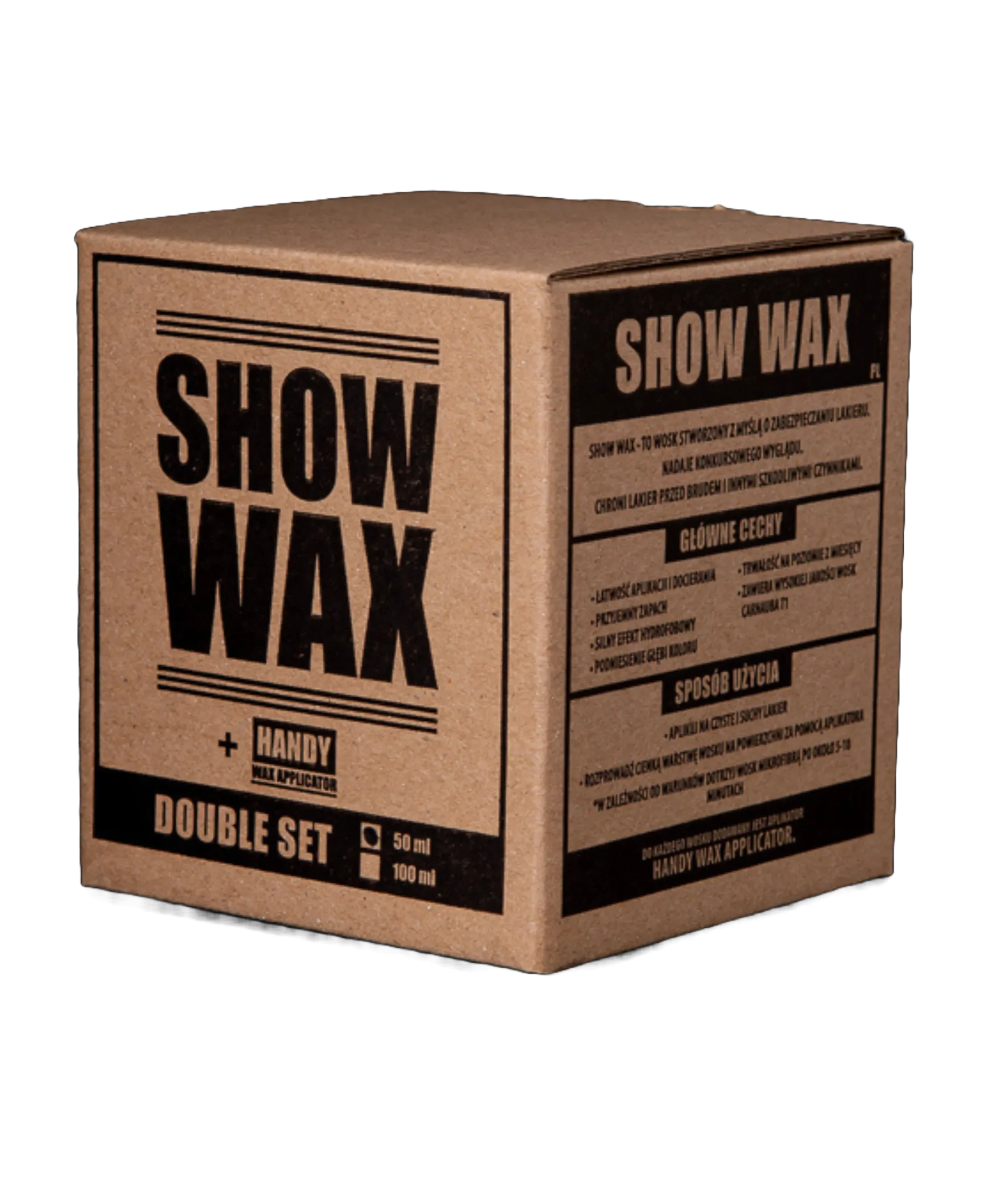 Wosk Show Wax charakteryzuje się niezwykle łatwą aplikacją i przyjemnym, cytrusowym zapachem, który umila pracę. Po wypolerowaniu lakier zyskuje efekt „show look” – lustrzany połysk i wyrazisty kolor, jak po profesjonalnym detailingu. W odpowiednich warunkach wosk utrzymuje się na powierzchni nawet do 2 miesięcy, chroniąc lakier i nadając mu perfekcyjny wygląd. W zestawie znajduje się aplikator WORK STUFF, który ułatwia precyzyjne i równomierne nakładanie produktu.