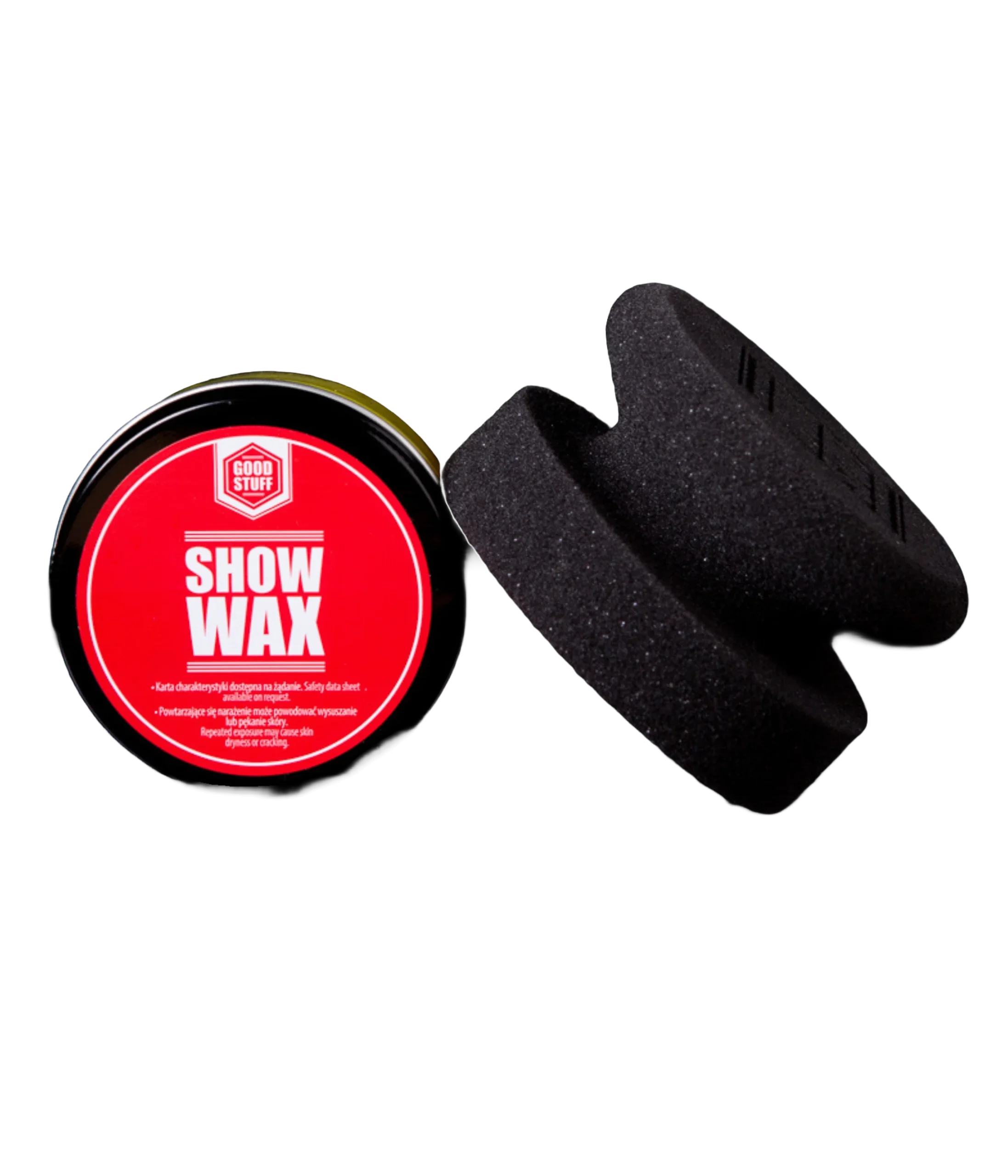 Good Stuff Show Wax 50 ml + aplikator to wysokiej klasy wosk ochronny oparty na naturalnej carnaubie, przeznaczony do zabezpieczania i podkreślania wyglądu lakieru samochodowego. Dzięki starannie dobranym składnikom produkt zapewnia intensywny połysk, głębię koloru oraz skuteczną ochronę przed brudem, solą i czynnikami atmosferycznymi. Tworzy trwałą, hydrofobową warstwę, która sprawia, że woda i zanieczyszczenia łatwo spływają z powierzchni, utrzymując lakier w czystości przez wiele tygodni.
