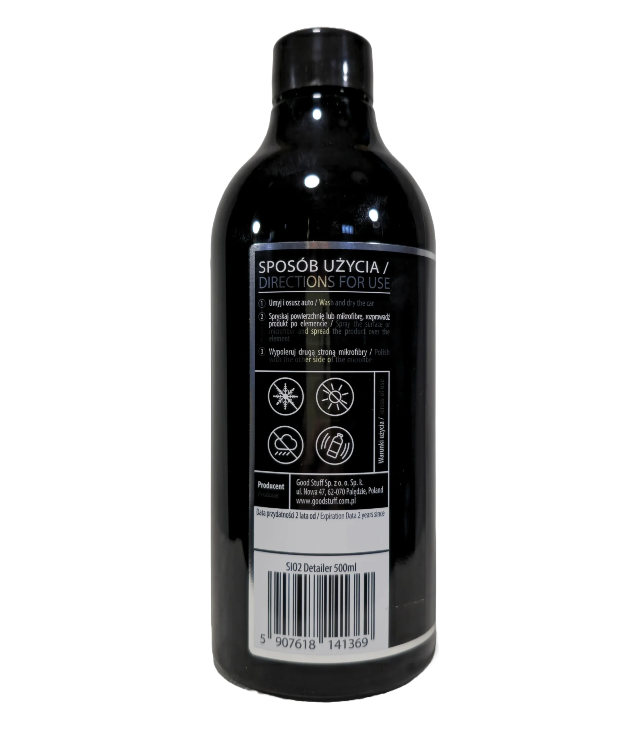 Good Stuff SiO₂ Detailer 500 ml to quick detailer z linii PASSION wzbogacony dwutlenkiem krzemu (SiO₂), który nadaje lakierowi wysoki połysk, śliskość oraz zapewnia ochronę porównywalną z powłokami ceramicznymi. Tworzy wytrzymałą, hydrofobową warstwę, chroniącą przed wodą, brudem i osadami drogowymi. Może być stosowany jako samodzielne zabezpieczenie lub jako wzmocnienie dla powłok ceramicznych i wosków. Efekt ochronny utrzymuje się nawet do 4 tygodni.