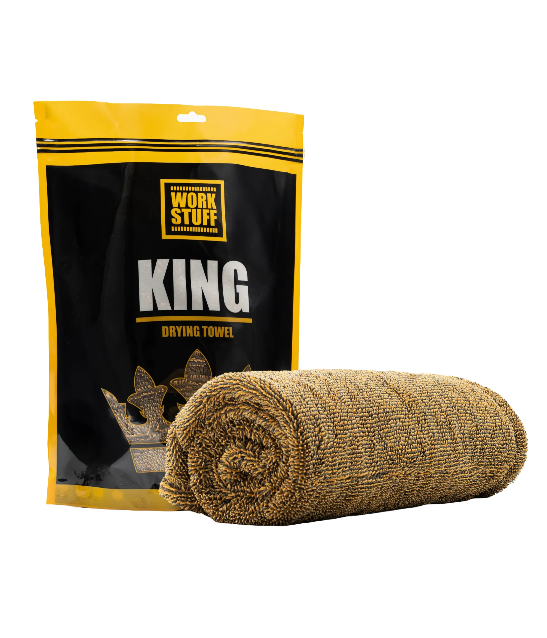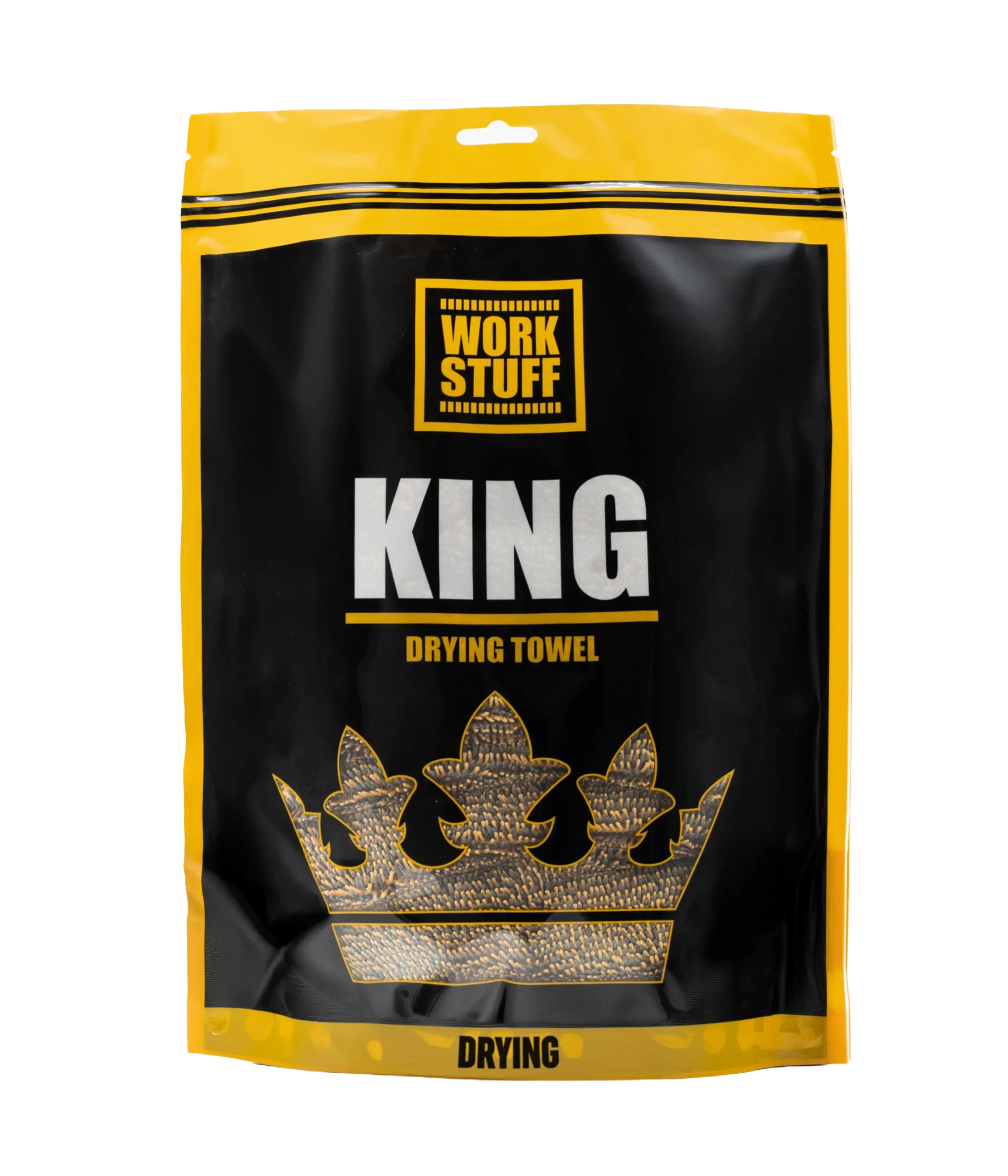 Work Stuff King Drying Towel to nowoczesne akcesorium stworzone z myślą o bezpiecznym i skutecznym osuszaniu samochodu po myciu. Wykonany z najwyższej jakości koreańskiej mikrofibry, łączy w sobie niesamowitą chłonność, miękkość i trwałość. Struktura Twisted Pile składa się z gęsto skręconych włókien, które błyskawicznie pochłaniają wodę, nie pozostawiając smug, zacieków ani ryzyka zarysowania lakieru.
